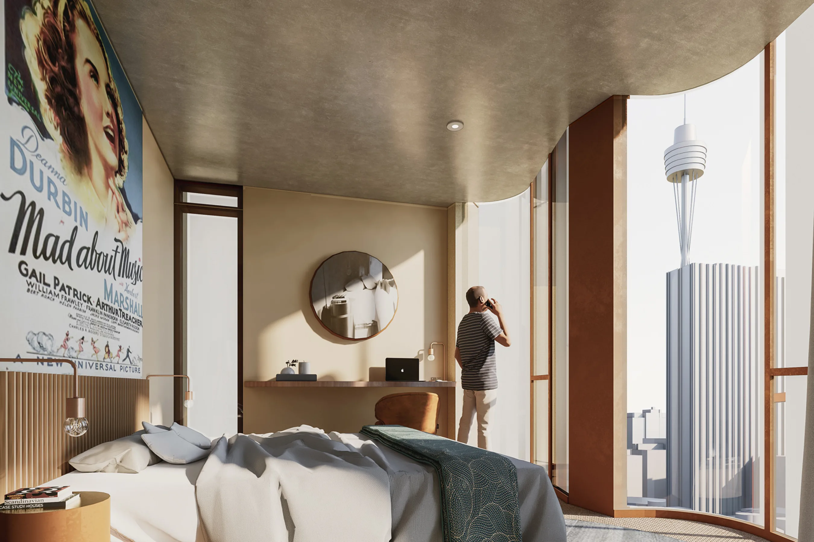 进行扩建并减少其前后缩进尺寸是保护和发展该地的最佳方案。竣工后的 RL 确定为 80 米,这个建筑围护结构将保护该遗产建筑 LEP 条目的宅地,不会产生任何额外的外观影响,同时也会通过精心的内部规划来实现 ADG 目标。拟建的建筑既尊重了该地的历史价值——它曾经是 Universal Pictures Building 所在地——同时又考虑到了独特的多用途开发。