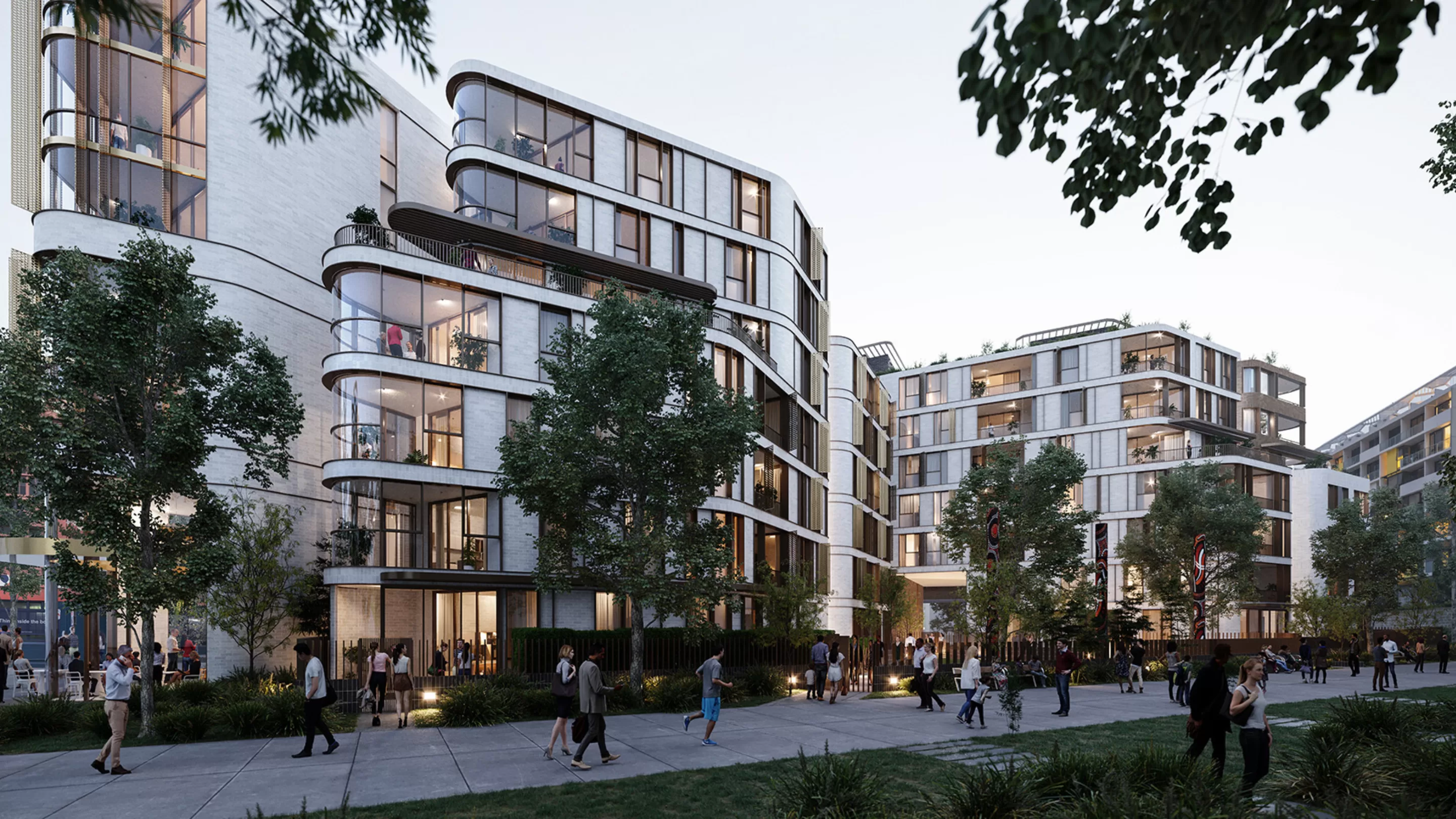 设计旨在从基地周边的工业仓库遗产建筑及基地环境的预期密度汲取灵感。设计中砖砌建筑的转角弧线的曲率就来源于新的弧形道路。通过相对的两个双层高入口连廊和之间的规划道路,最终形成的两栋沿街L型建筑产生视觉上的联通。这个新的东西向步行道将基地两侧的两条南北向步行道联系起来。