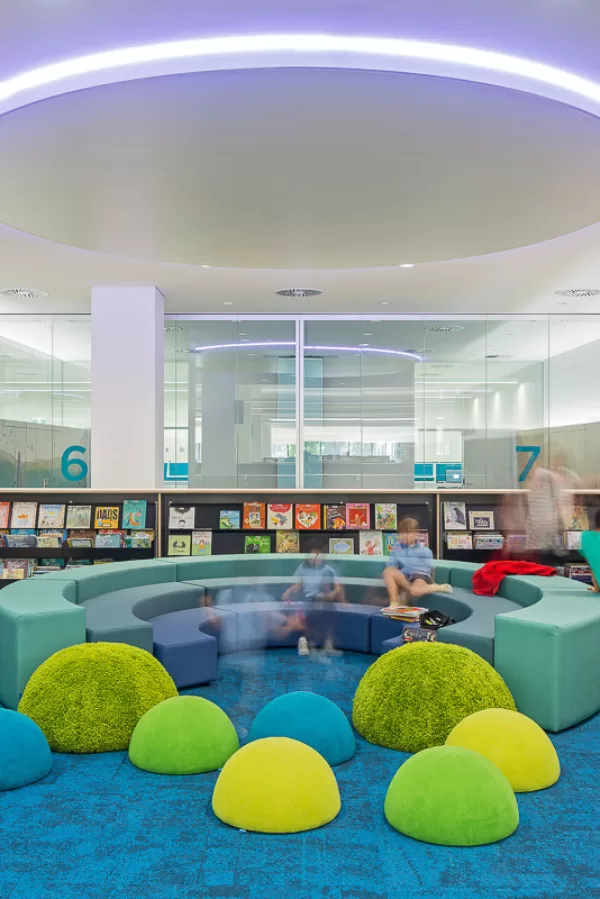 PTW的室内设计以打造更加大方和多变的公众空间为概念,入口处采用全落地玻璃增加立面可视空间,力图将人群从毗邻的商场吸引至此。同时,通过不同家具的使用,促进使用者使用包括学习区、儿童角和教育设施在内的一系列活动空间。