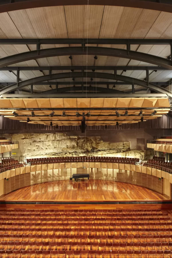 建筑的材料选择集中浓缩了悉尼的特色及反映了建筑施工步骤及过程。大厅大胆暴露了开挖的岩石,对学校以及悉尼表演厅都是一个独特的补充诠释。