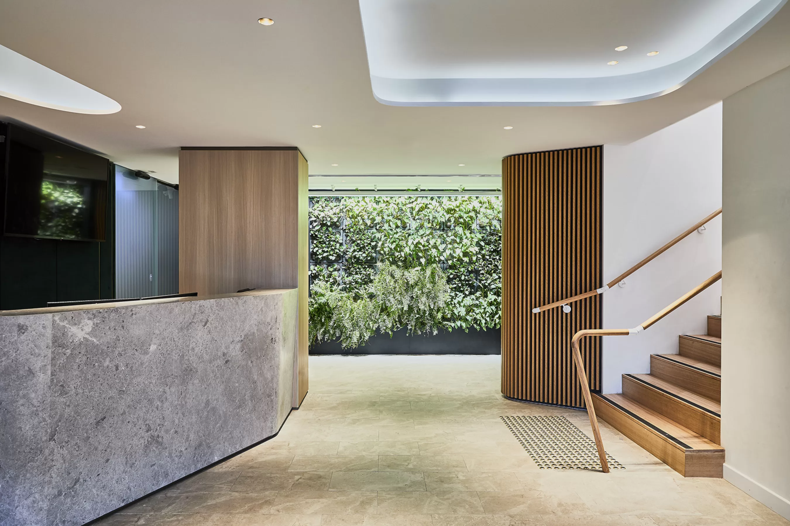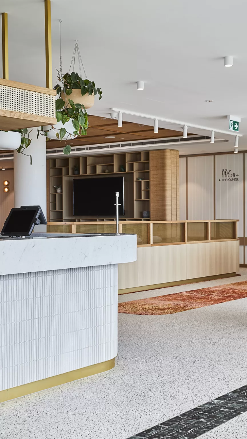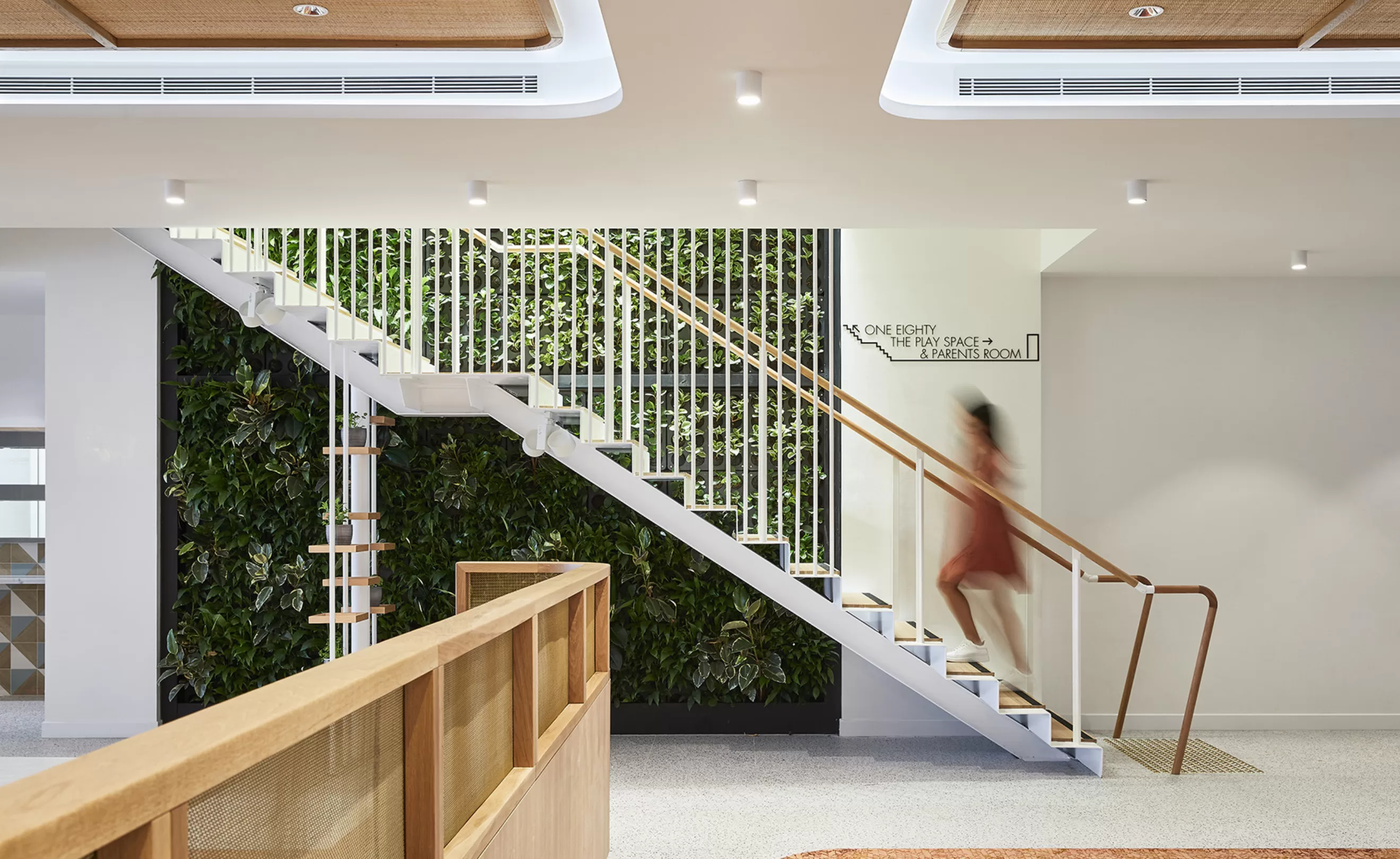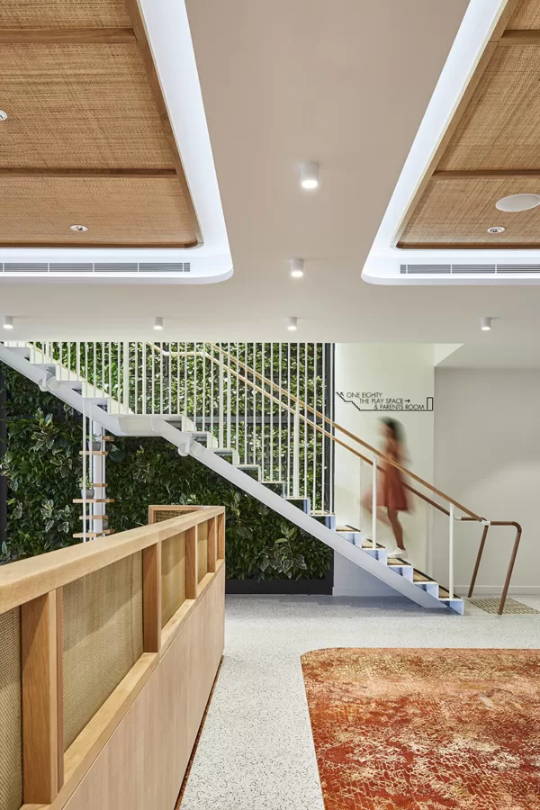 项目入口处的特色植物墙通过两层的楼梯中空延续至酒吧,并蔓延至活动空间的三面墙壁。植物墙采用真实植物,使客人感受到 清新的空气,被有效抑制的噪音控制,更凉爽的空气温度,以及亲近大自然产生的镇定效果。这些植物能够有效的过滤了污染物并润湿了空气,减少了对空调系统的依赖和过度的能量消耗。室内设计的元素和材料均经过精心的挑选,以确保其可持续性,并能够达到绿色环保星级评分的要求。