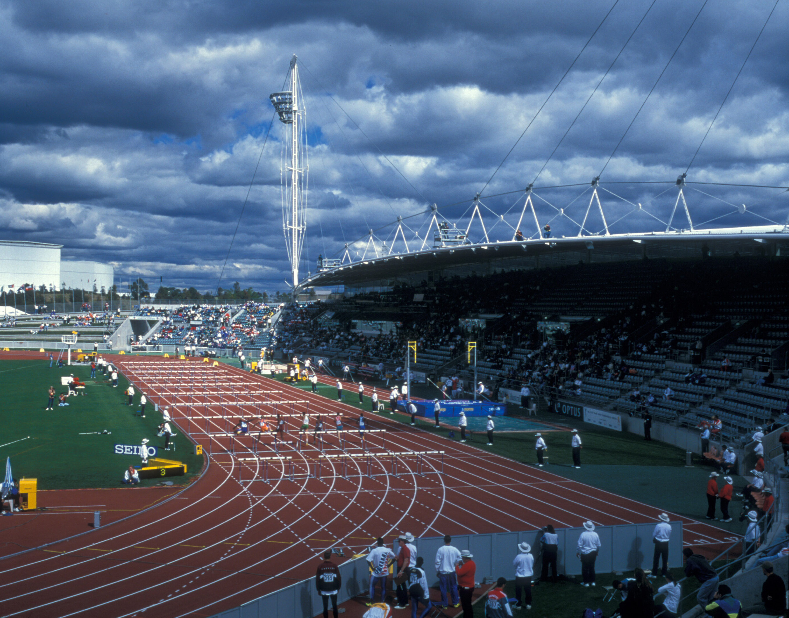 Winner of the RAIA's Merit Award (Public Buildings) of 1995, the Sydney International Athletic Centre is an elite athletics facility with 5,000 seats, half of which are undercover—with an additional 10,000 seats on grassed embankments. With the same environmental and qualitative track conditions of the main stadium, the centre acted as a warm-up facility during the Games. Thereafter, it was reverted to serve as the premiere athletic facility in Sydney—a purpose it serves still to this day.