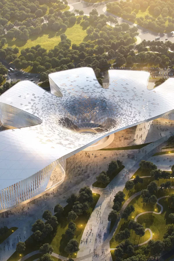 The exhibition centre located on the eastern side of the precinct will host international trade shows and also serve as a multifunctional venue for sporting events, exhibitions, concerts and even an emergency pandemic facility.