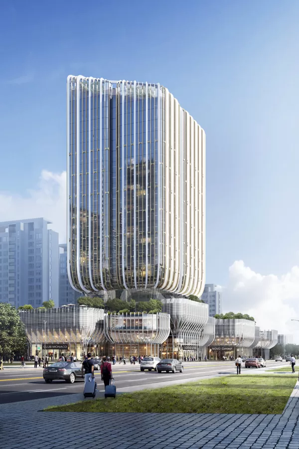 Adhering to the project positioning of an "urban green lung", the hotel emphasizes "organic ecology" as its design ethos. This manifests as the urban green axis in a vertical direction, forming a three-dimensional sculptured icon in its strategic position within the city.