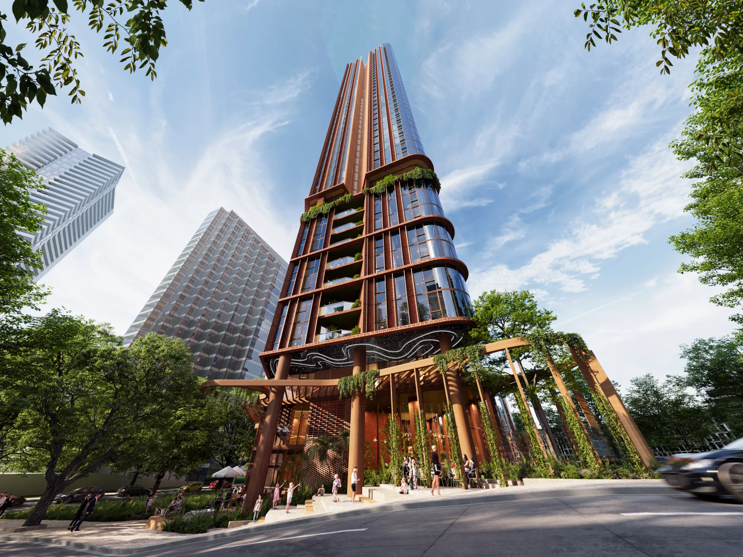 Located in a prominent location on the eastern side of Pacific Highway, the 43 level mixed use BTR development includes 418 units, retail hospitality and commercial spaces. The public realm is intended to provide a focus to the disjointed surrounding public spaces. The space will encourage community interaction - a space of calm within Chatswood’s high energy dynamic environment.