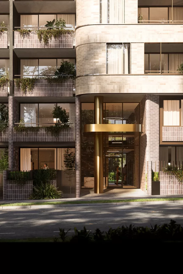 设计旨在从基地周边的工业仓库遗产建筑及基地环境的预期密度汲取灵感。设计中砖砌建筑的转角弧线的曲率就来源于新的弧形道路。通过相对的两个双层高入口连廊和之间的规划道路,最终形成的两栋沿街L型建筑产生视觉上的联通。这个新的东西向步行道将基地两侧的两条南北向步行道联系起来。