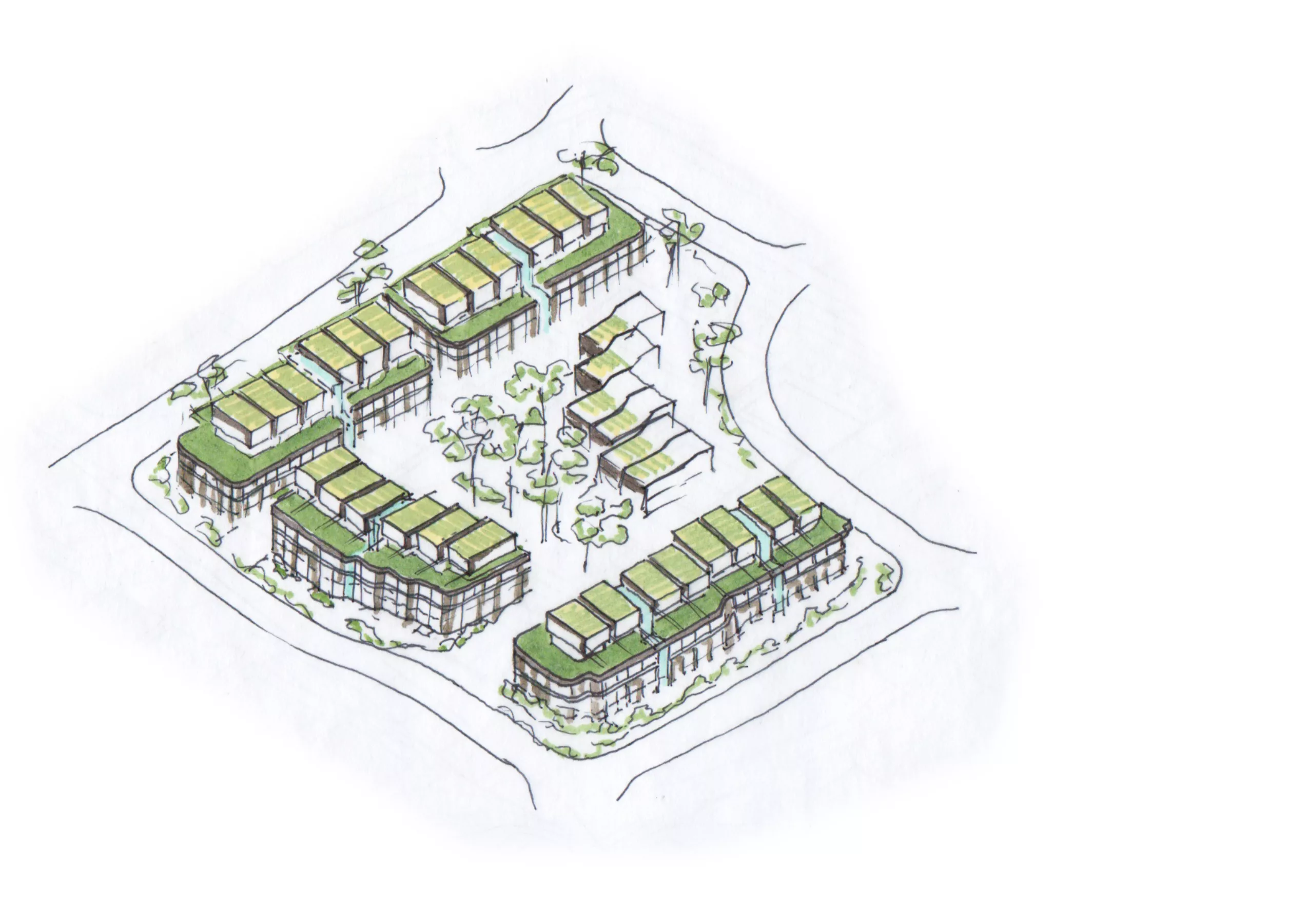 Being in one of the fastest growing suburbs in the Hills District, the Larool Crescent dwellings will comprise of 110 apartments and 6 townhouses spread across four to five-level buildings on a 8,000sqm block. The development will provide generous open and private spaces that complements the leafy characteristics of the Hills. The apartment design seeks to offer a variety of high standard residences such as the double height loft apartments with private courtyards and ‘sky houses’ which resemble townhouses elevated above the roof.