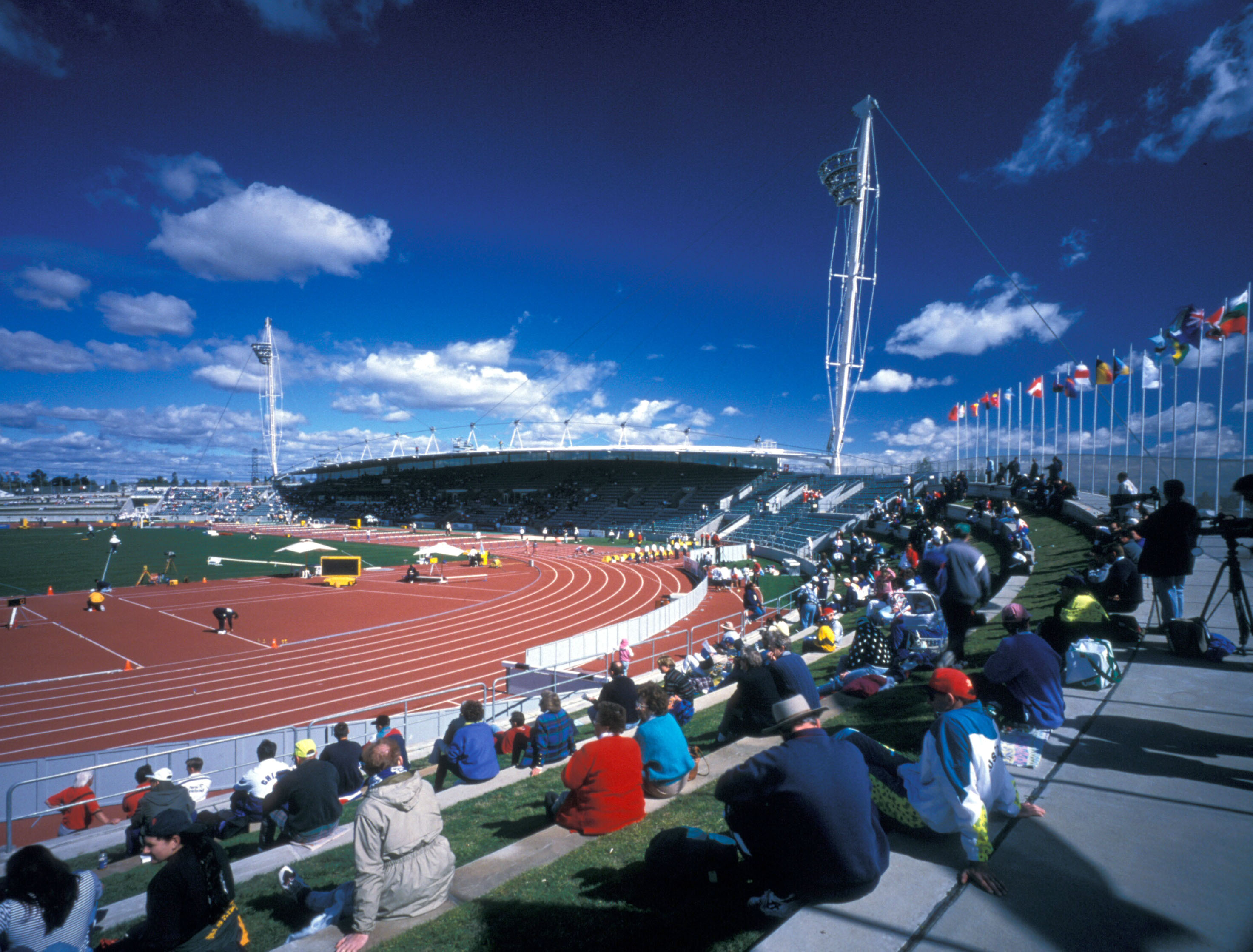 Winner of the RAIA's Merit Award (Public Buildings) of 1995, the Sydney International Athletic Centre is an elite athletics facility with 5,000 seats, half of which are undercover—with an additional 10,000 seats on grassed embankments. With the same environmental and qualitative track conditions of the main stadium, the centre acted as a warm-up facility during the Games. Thereafter, it was reverted to serve as the premiere athletic facility in Sydney—a purpose it serves still to this day.