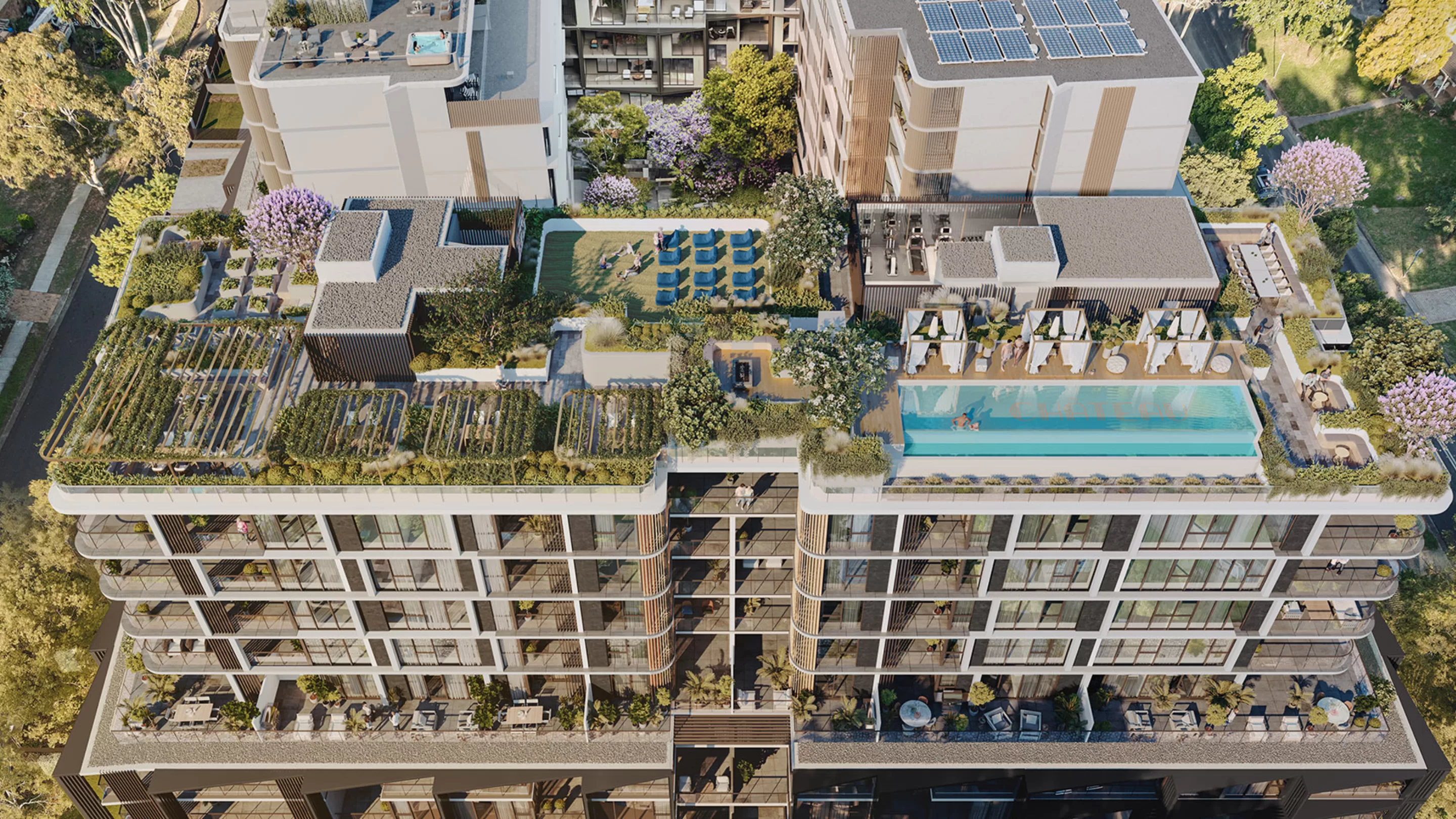As one of the pioneering exemplars in the Castle Hill Showground precinct, Chateau takes sustainable principles of green infrastructure design and adapts them to an appropriate response for this suburban area which is undergoing significant growth and revitalisation.