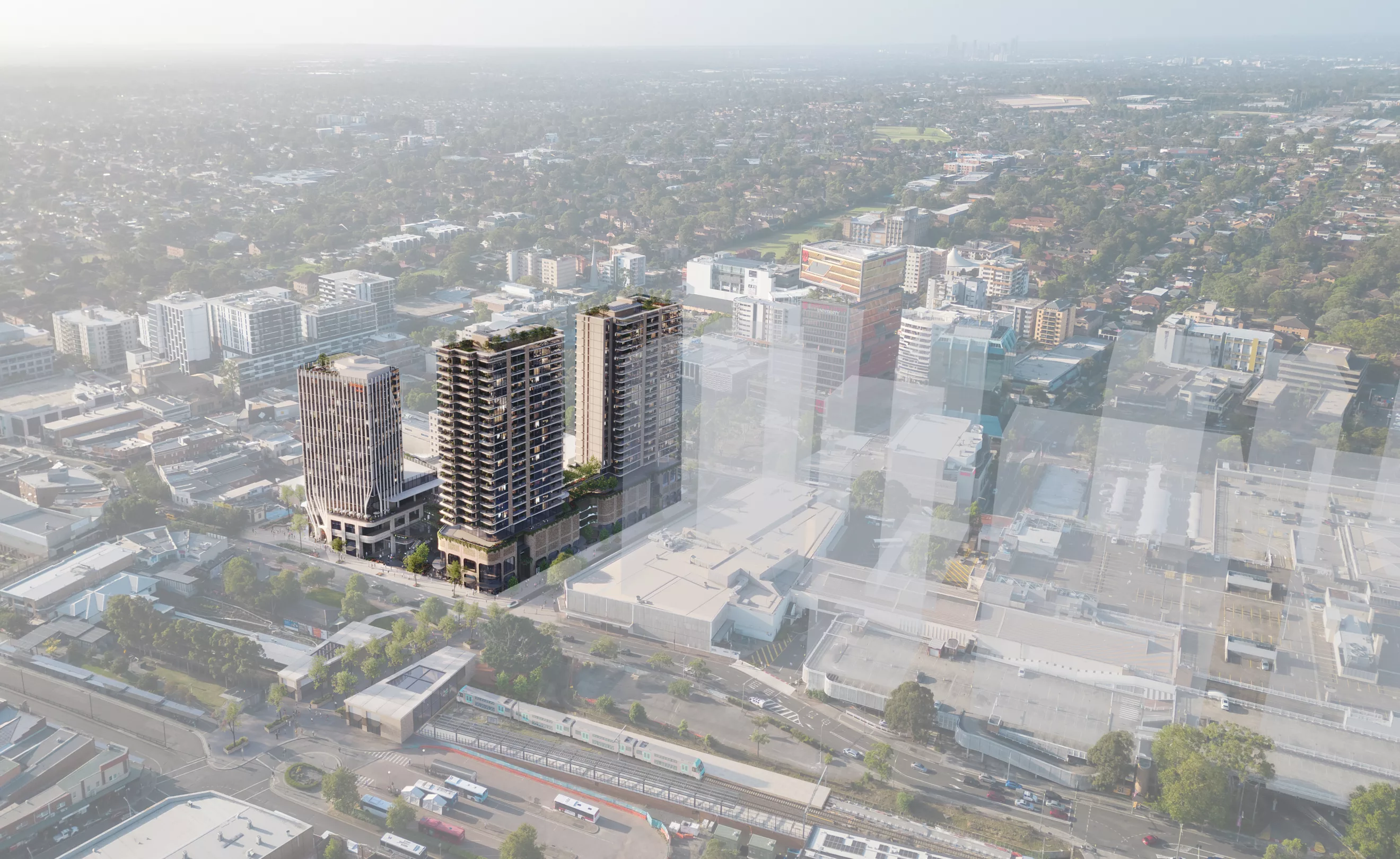 The podium comprises ground floor retail activation, through-site links providing direct connections to and from the Bankstown railway (and future metro) station, Paul Keating Park, WSU Bankstown Campus and Bankstown Central Shopping Centre.