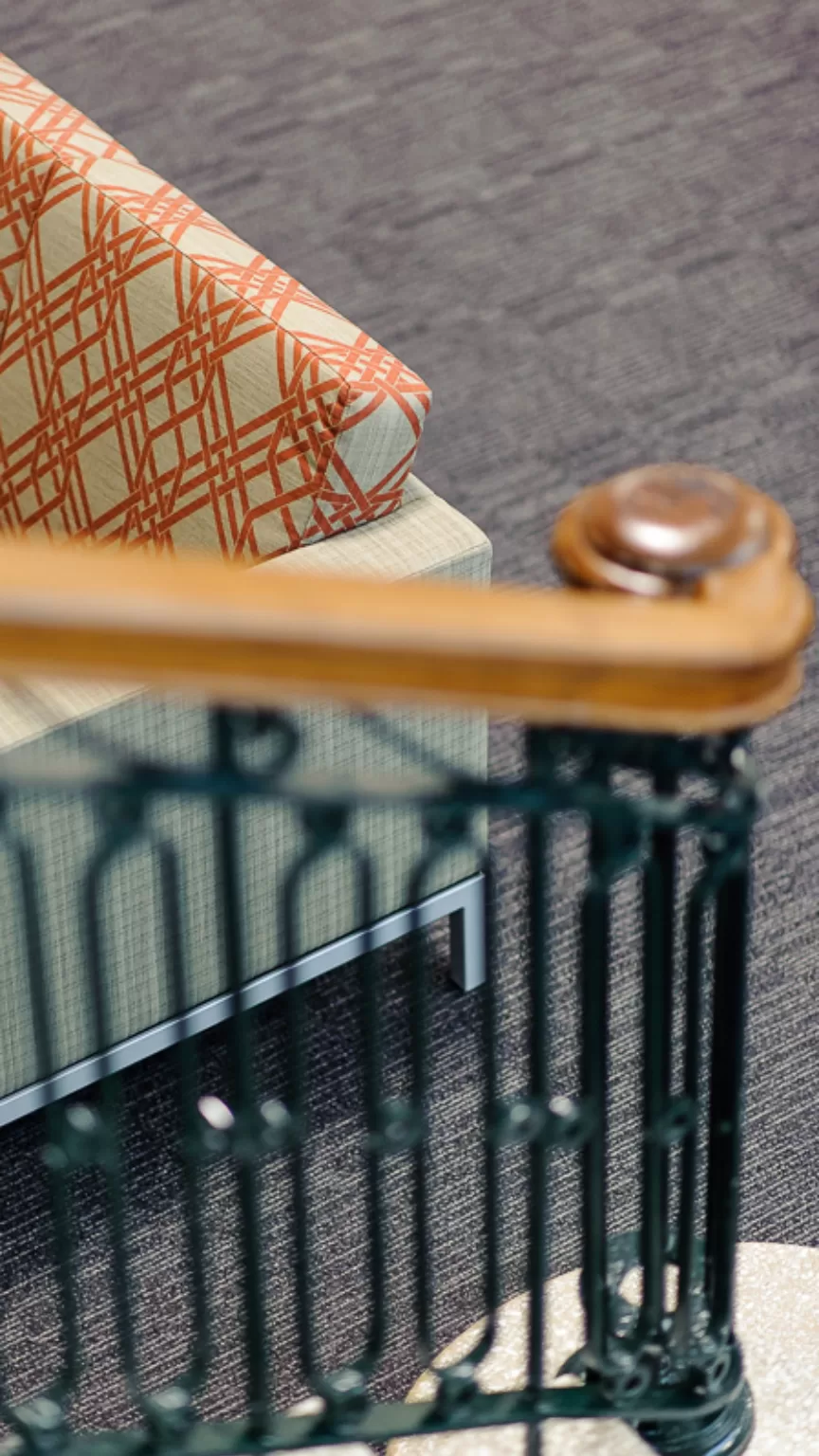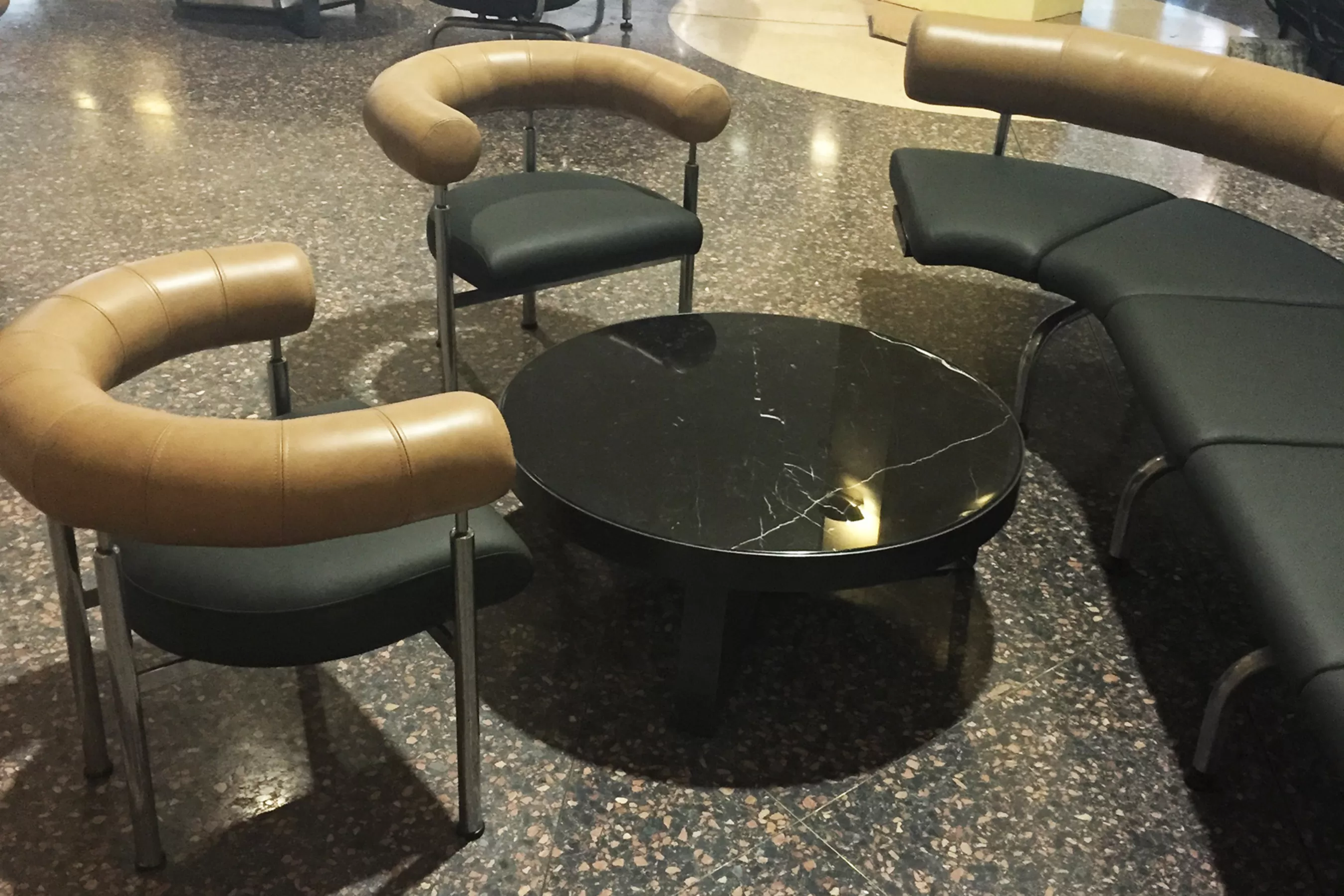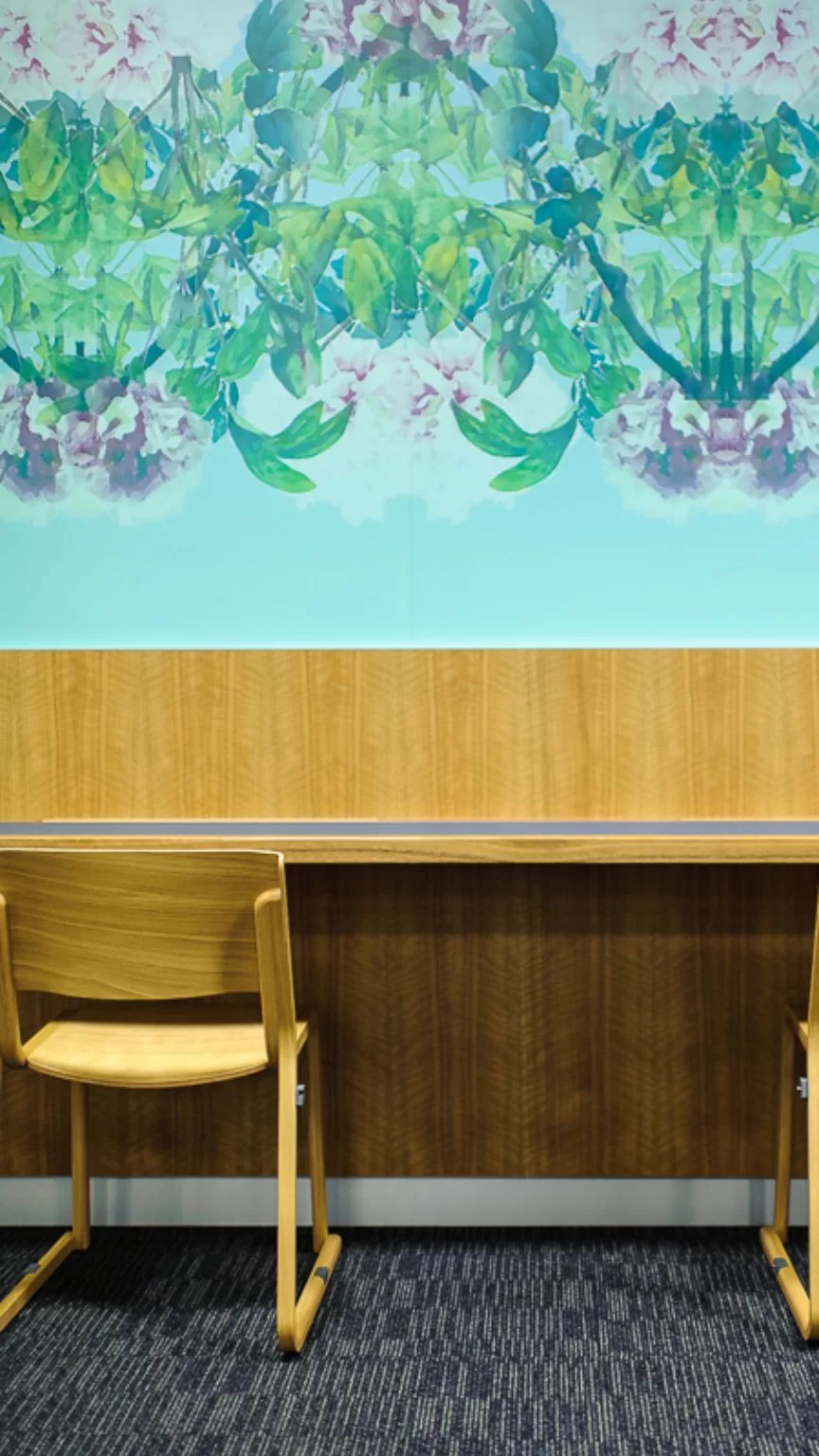 The reupholstery of early public furniture: The team advised the client, who wanted to replace all the existing furniture, that their current stock of 1980s Erik Jorgensen classic furniture was worth more than what they were wanting to replace it with. So a shift was made away from procuring new furniture to the upgrade of existing furniture. These original high end pieces had been poorly upholstered and neglected overtime. Our advice was to have the pieces reupholstered in leather to not only ensure the longevity and robustness required in public spaces, but to be more in keeping with the original design. This process involved working closely with leather suppliers to find a leather solution that was colour and hide appropriate, durable and easily replaceable. It also involved working closely with the upholsterers to ensure attention to detail, such as correct stitching details and assembly. A prototyping process involved the leather supplier, upholsterer and ourselves working as a team.