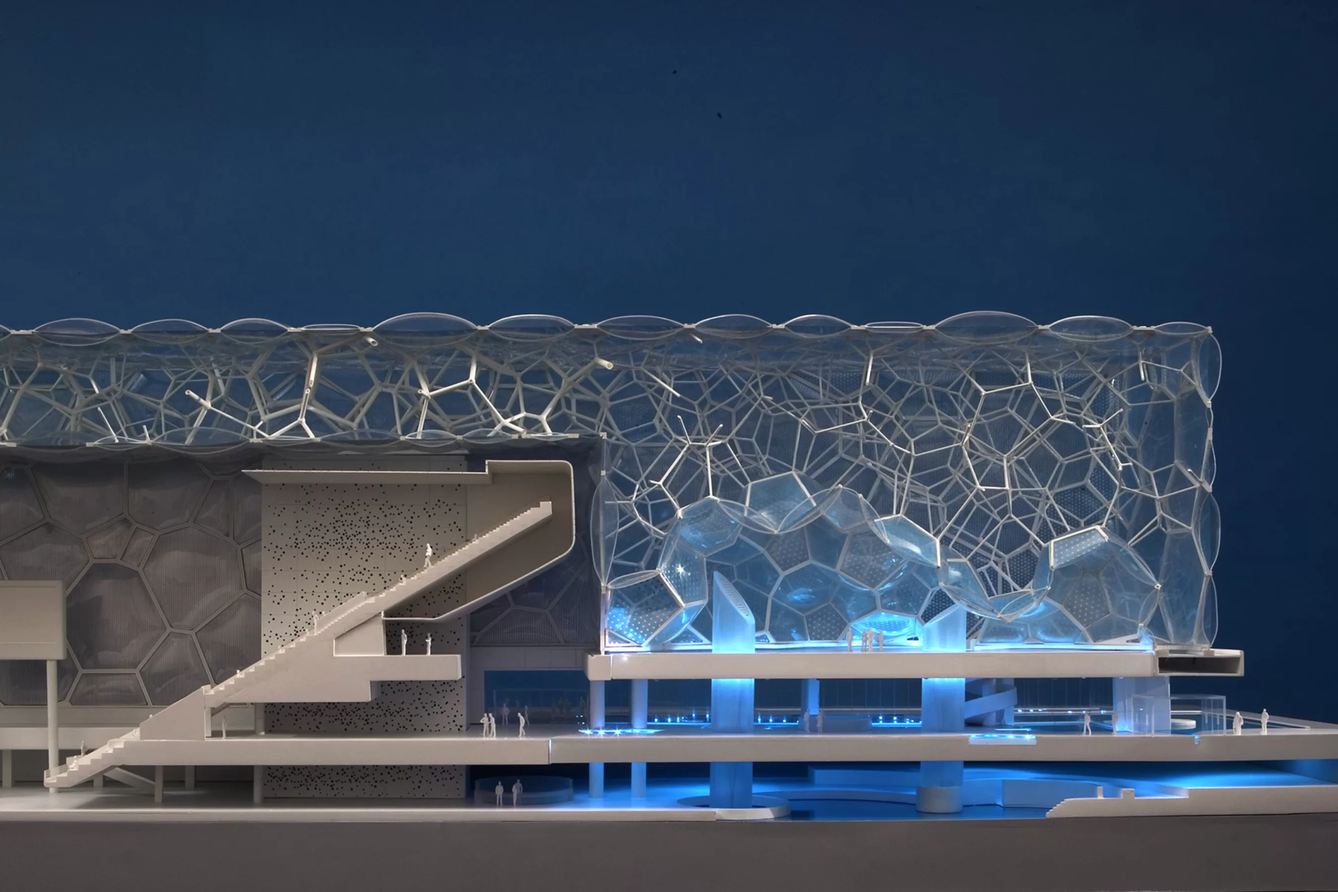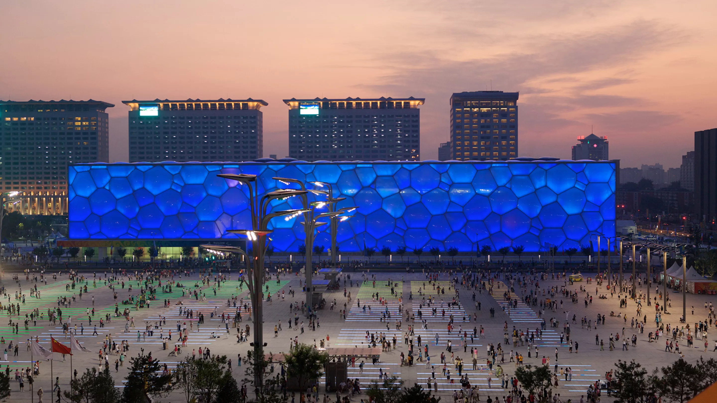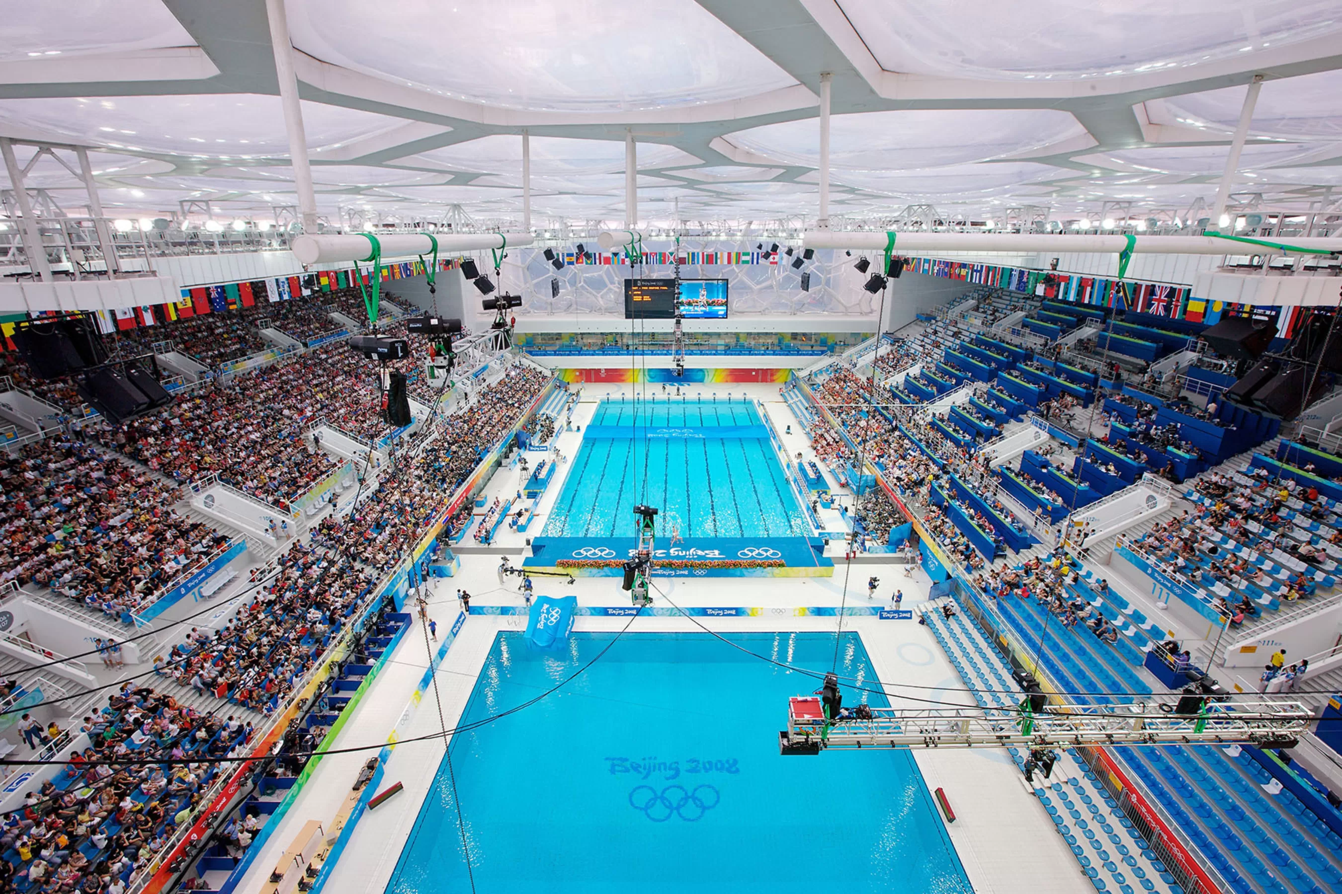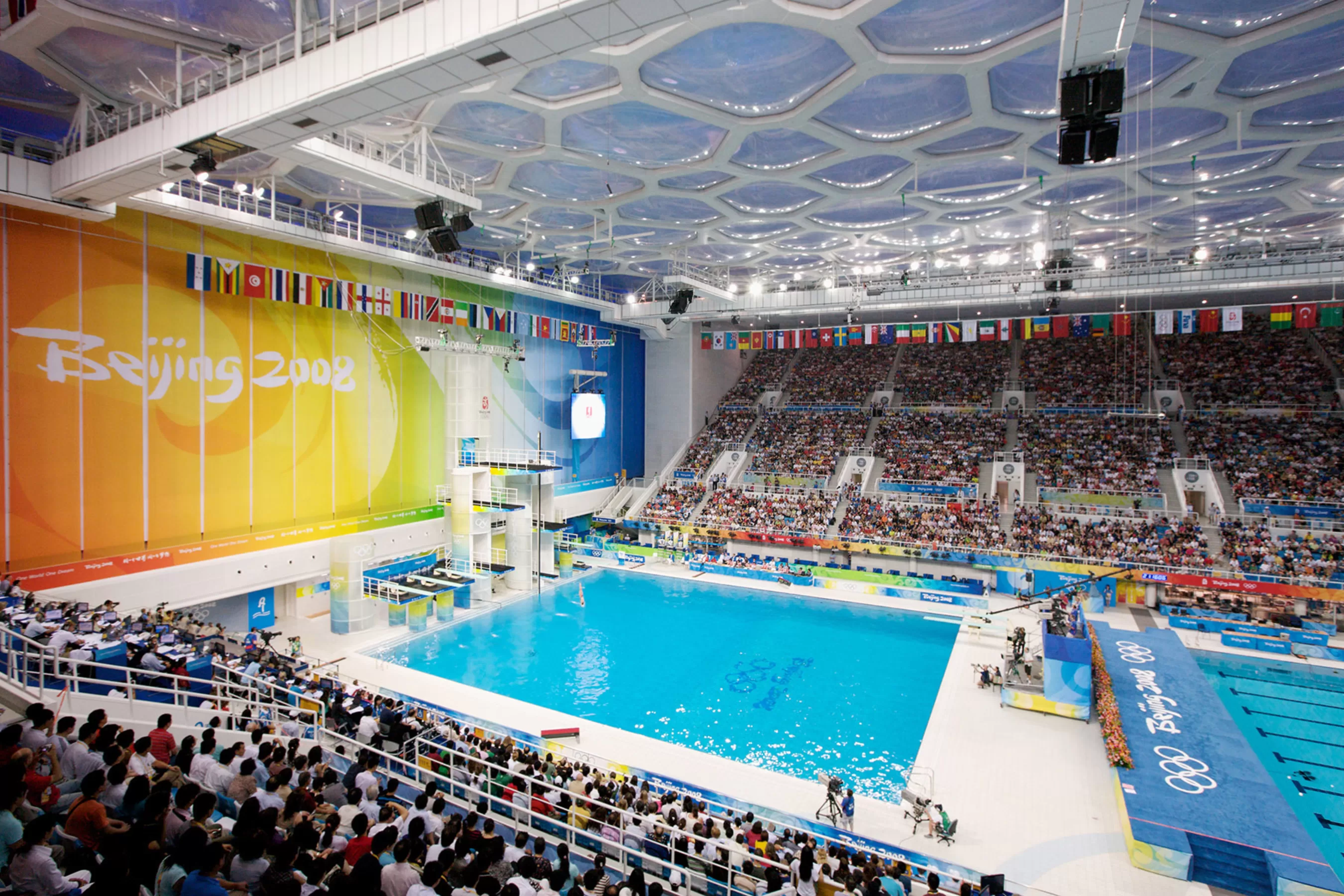 In addition to being an aquatic competition venue for the games, the centre provided public multi-function leisure and fitness facilities before and after the games. The concept combined the symbolism of the square in Chinese culture and the natural structure of soap bubbles translated into architectural form.