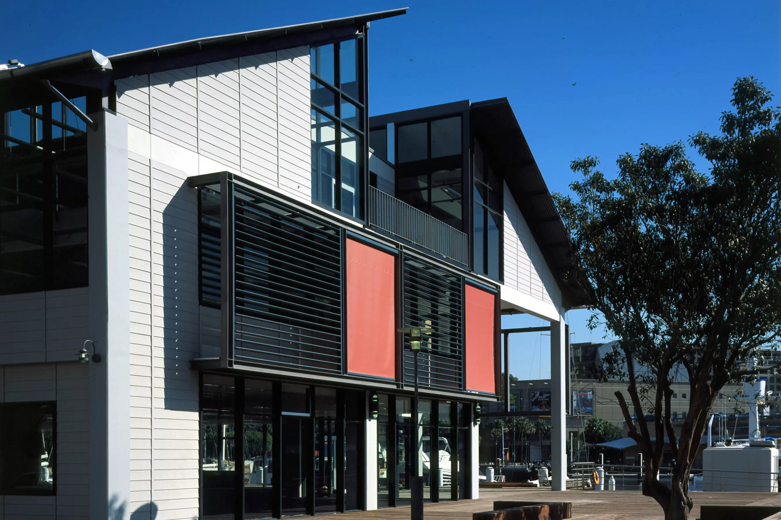 The first stage at Wharf 10 was completed in 2001, and involved the development of a harbour’s edge commercial office building and retail complex of 5000m² over three levels. This saw the extension of the public domain which included a 550m² ‘urban park’ with shade structures and large areas of evocative hardwood decking timbers.