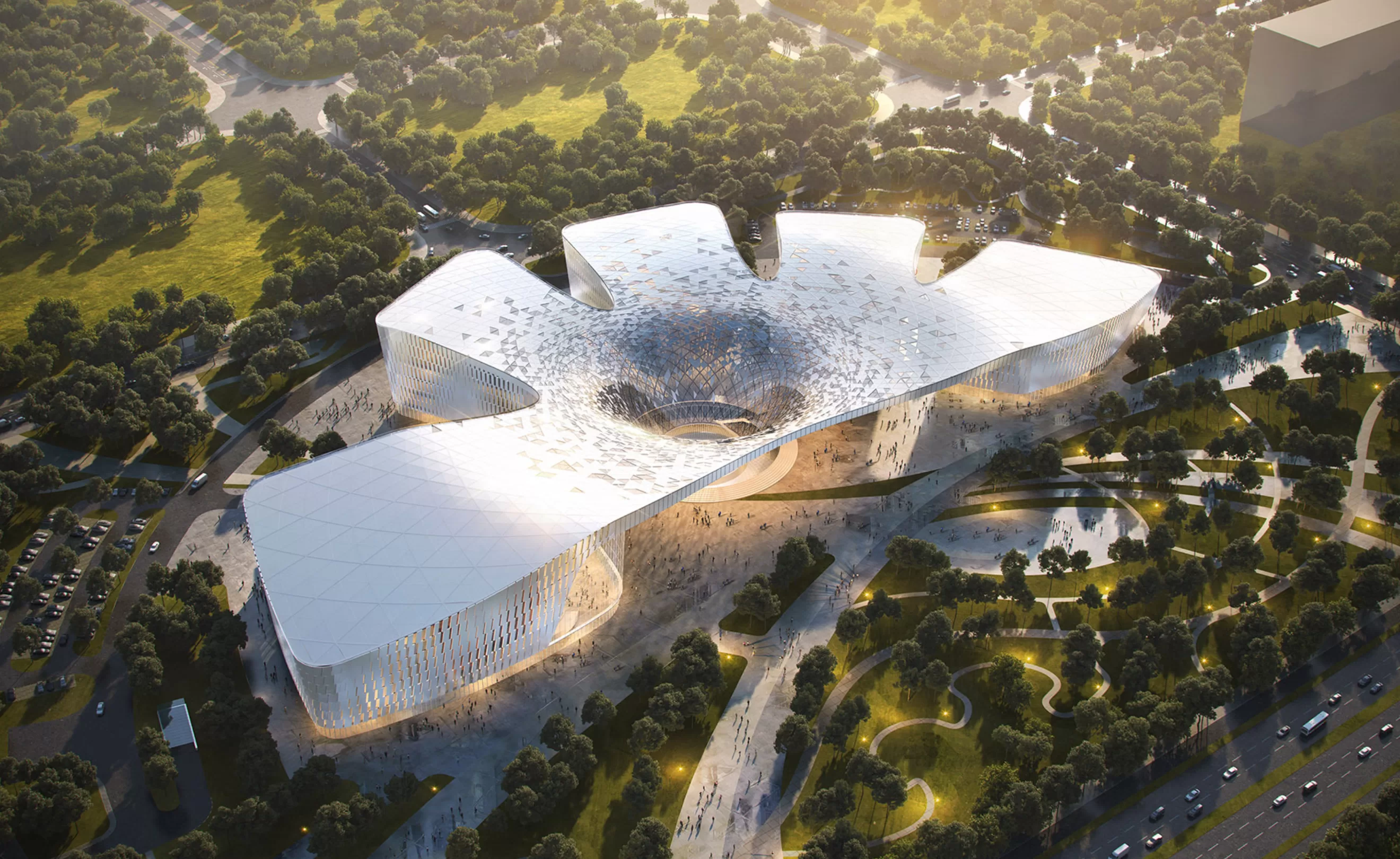 The exhibition centre located on the eastern side of the precinct will host international trade shows and also serve as a multifunctional venue for sporting events, exhibitions, concerts and even an emergency pandemic facility.